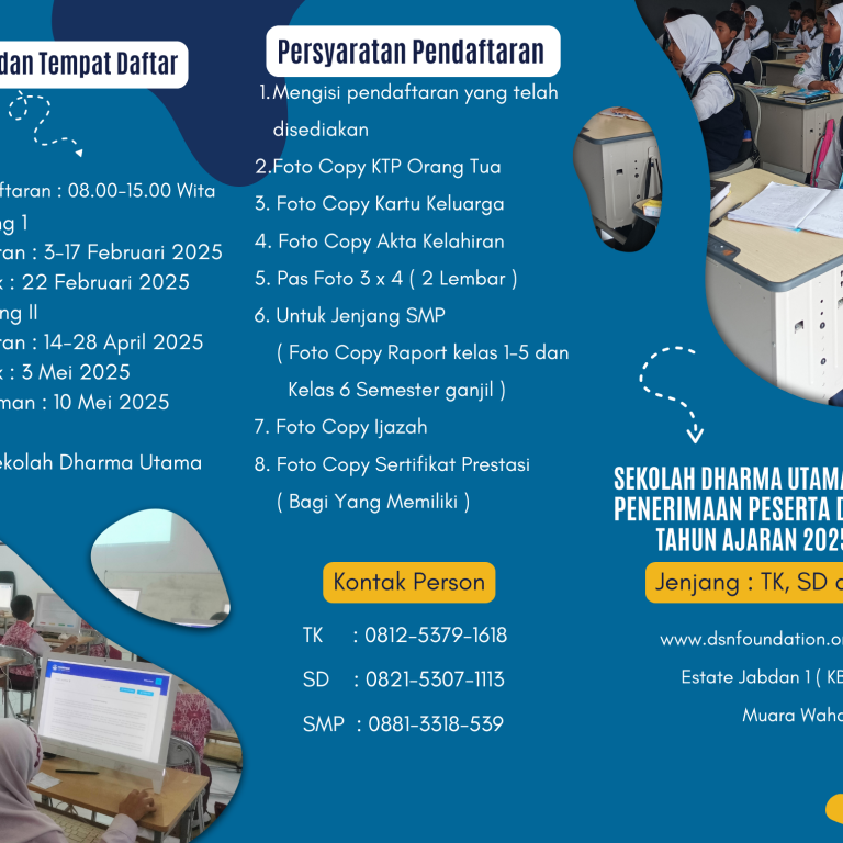 Sekolah Dharma Utama Membuka Penerimaan Siswa Baru Untuk Tahun Ajaran 2025/2026 berikut jadwal kegiatannya :